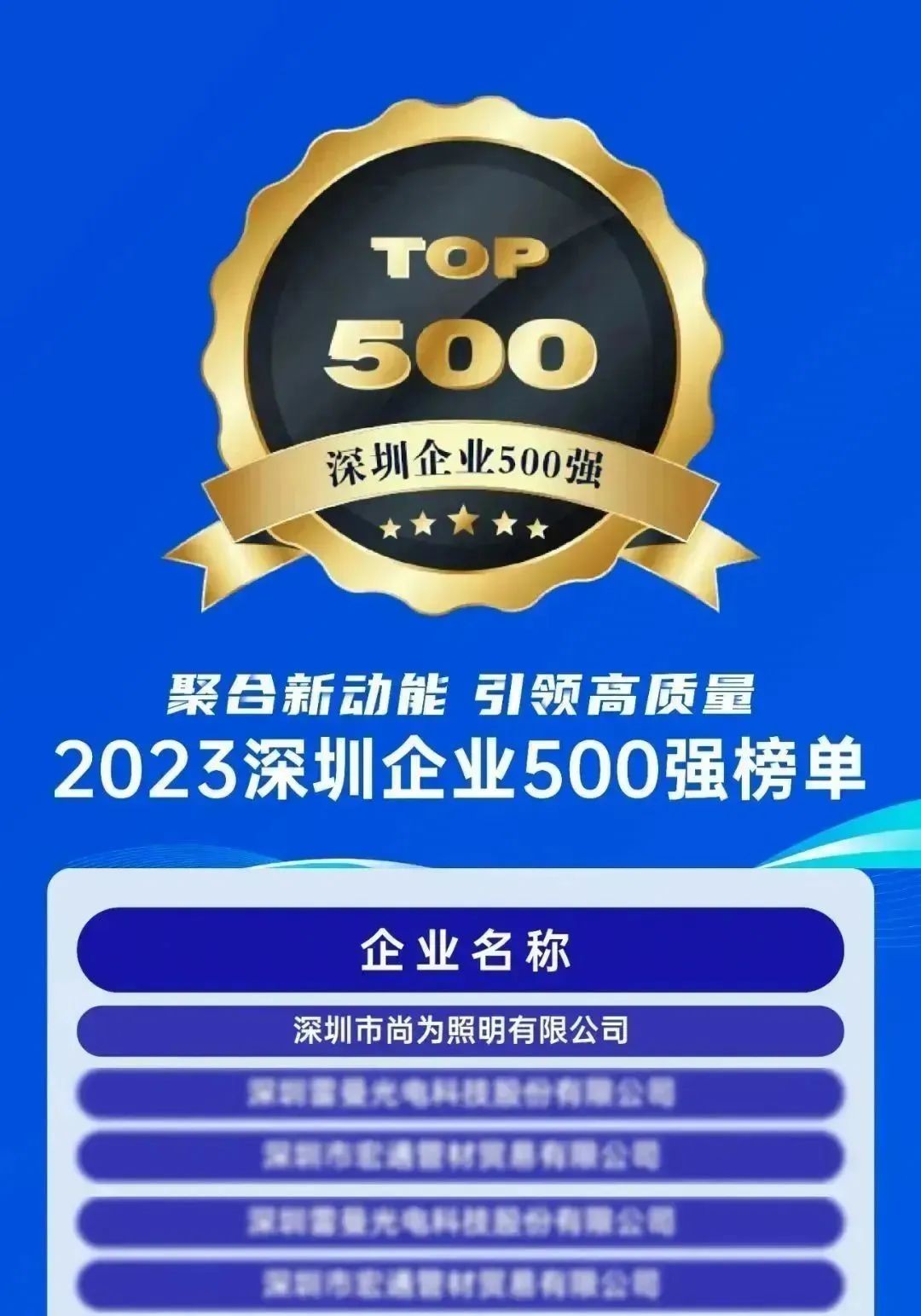 尚為照明連續(xù)四年入選深圳企業(yè)500強榜單丨惠州基地二期4號廠房投運助力四季度高質量保障