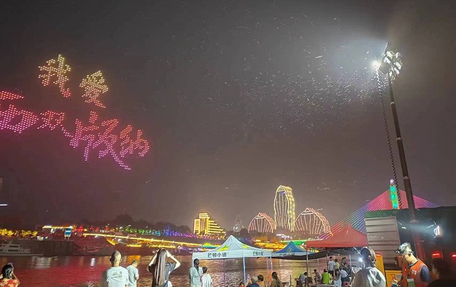 413日早晨,為保障龍舟比賽及夜間活動(dòng)進(jìn)行,支援小組克服了斜坡沙石踩滑、扛設(shè)備過(guò)江、船用設(shè)備調(diào)整等問(wèn)題,將設(shè)備布置在了每一個(gè)需要的場(chǎng)所,龍舟比賽圓滿完成。413日晚,放飛孔明燈活動(dòng)出現(xiàn)意外情況,尚為支援小組協(xié)助消防部門展開緊急救援,現(xiàn)場(chǎng)人流大、環(huán)境嘈雜,支援小組以最快的速度架起了一座應(yīng)急燈塔,提供照明保障。