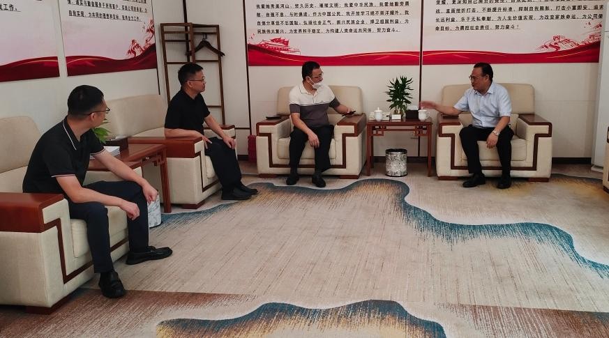 胡興向歐陽(yáng)慶一行詳細(xì)介紹了企業(yè)發(fā)展史及“三大戰(zhàn)略”等規(guī)劃,將尚為黨建引領(lǐng)企業(yè)經(jīng)營(yíng)發(fā)展的成熟經(jīng)驗(yàn)進(jìn)行了分享,對(duì)集團(tuán)核心產(chǎn)品及市場(chǎng)格局做了講解。一行人參觀(guān)融合展廳后落座貴賓室,就企業(yè)發(fā)展與規(guī)劃、合作前景進(jìn)行了深入交流。